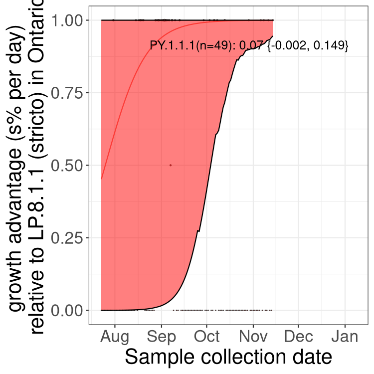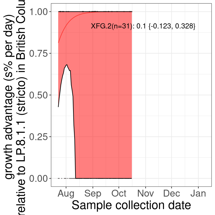 Thus, interpretation of these plots and comparisons between health regions should be made with caution, considering that the data may not be fully representative. These analyses are subject to frequent change given new data and updated lineage designations.